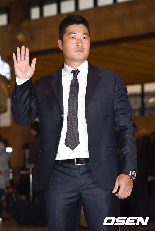 출국에 앞서 오승환이 포토타임을 갖고 있다.