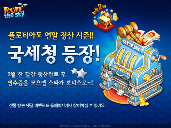 조이시티는 27일 모바일 소셜네트워크게임(SNG) ‘룰더스카이’에 신규 건물 ‘국세청’을 추가했다고 전했다.