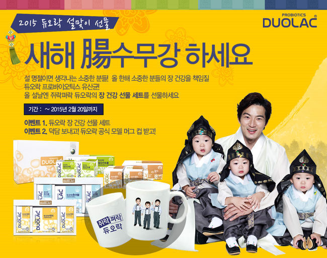 이와 함께 쎌바이오텍은 듀오락 온라인몰에서 듀오락과 듀오락의 공식 모델 대한, 민국, 만세 세 쌍둥이에게 새해 덕담을 남긴 사람 중 200명을 추첨해 삼둥이 머그컵을 선물로 제공하는 이벤트도 진행한다.