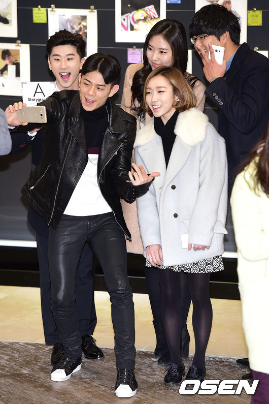 가수 빈지노, 스포츠클라이밍 선수 김자인이 포토타임을 갖고 있다.