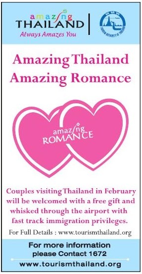 지난 2013년부터 시작된 태국의 연인들을 위한 2월의 로맨틱 이벤트, '어메이징 타일랜드 어메이징 로맨스(Amazing Thailand Amazing Romance)'가 올해도 2월 1일부터 28일까지 한 달간 세상의 모든 커플들을 위해 돌아왔다.