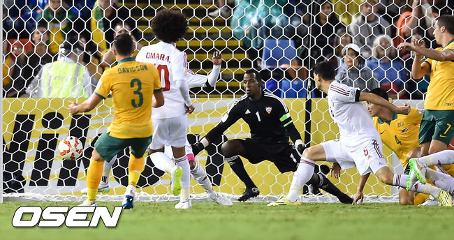 27일 오후 호주 뉴캐슬에서 열린 2015 AFC 아시안컵 준결승, 호주와 아랍에미레이트(UAE)의 경기, 전반 호주 데이비슨이 추가골을 넣고 있다.