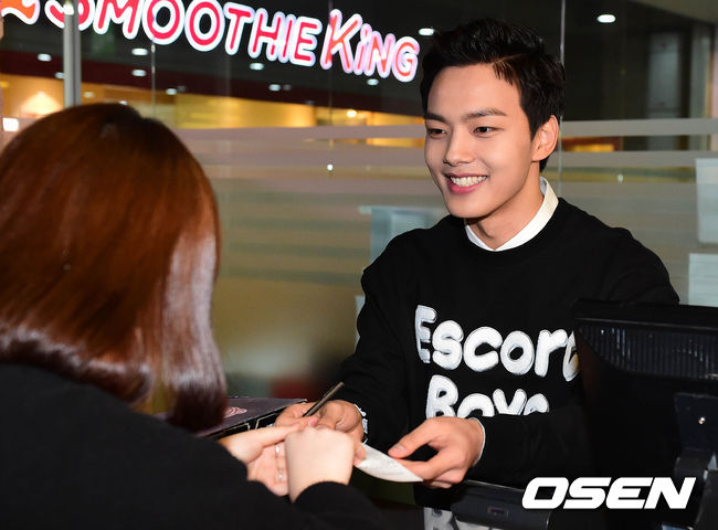 27일 오후 서울 삼성동 메가박스 코엑스에서 열린 영화 '내 심장을 쏴롸' 일일스태프 행사에서 여진구가 티켓 판매를 돕고 있다.