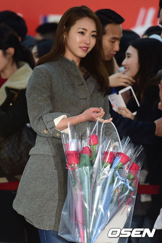 이연희가 팬들에게 장미꽃을 나눠주기 위해 발걸음을 옮기고 있다.