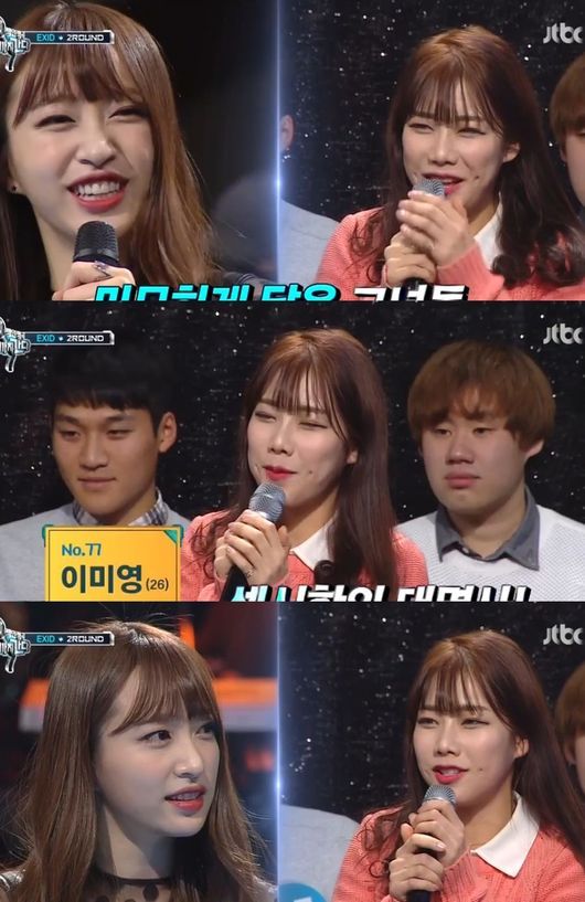 27일 방송된 JTBC '백인백곡-끝까지 간다'에서는 2라운드에 올라간 EXID의 도전이 전파를 탔다. 2라운드에서는 EXID의 멤버 하니가 도전을 했다. 하니는 "우리 팀의 컨셉에 맞게 섹시한 노래를 부르고 싶다"며 "아까부터 77번 분인 눈에 띄더라. 나를 닮은 것 같다"고 말했다.
