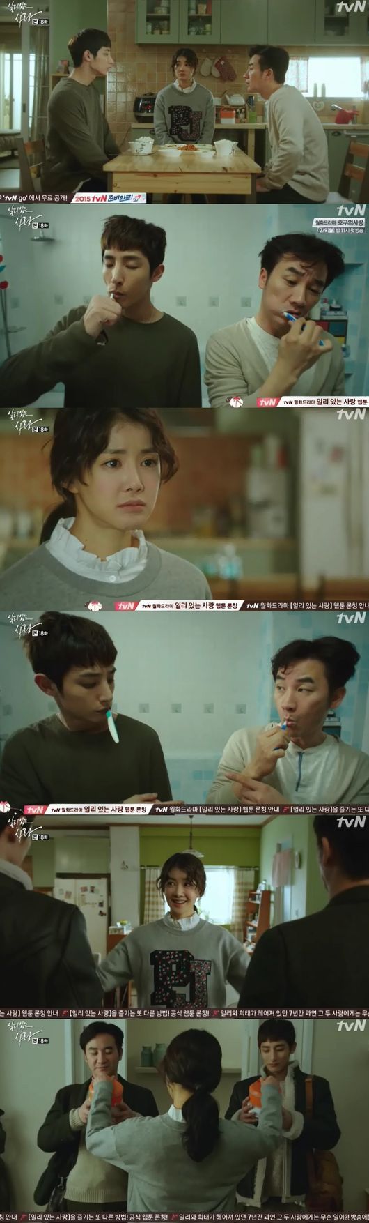 27일 오후 방송된 케이블채널 tvN 월화드라마 '일리 있는 사랑'(극본 김도우 연출 한지승) 18회에는 만취한 김준(이수혁 분)을 자신의 집에서 재우기로 결심한 장희태(엄태웅 분)의 모습이 전파를 탔다.