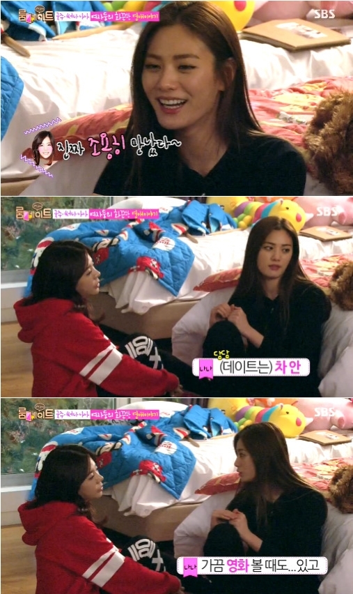 27일 오후 방송된 SBS 예능프로그램 '룸메이트' 37회에서는 나나, 써니, 이국주가 서로의 연애관을 털어놨다.