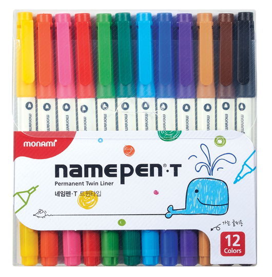 모나미는 유성 마카 제품의 대표 제품이자 모나미의 스테디셀러 중 하나인 '네임펜'의 색상을 검정-파랑-빨강 등 기존 3가지에서 총 12가지로 대폭 늘렸다. 뿐만 아니라, 신제품에는 가는 글씨(0.4mm)와 중간 글씨(1mm)를 모두 쓸 수 있도록 펜의 앞뒤로 닙을 구성한 트윈 닙 타입으로 업그레이드를 단행했다.