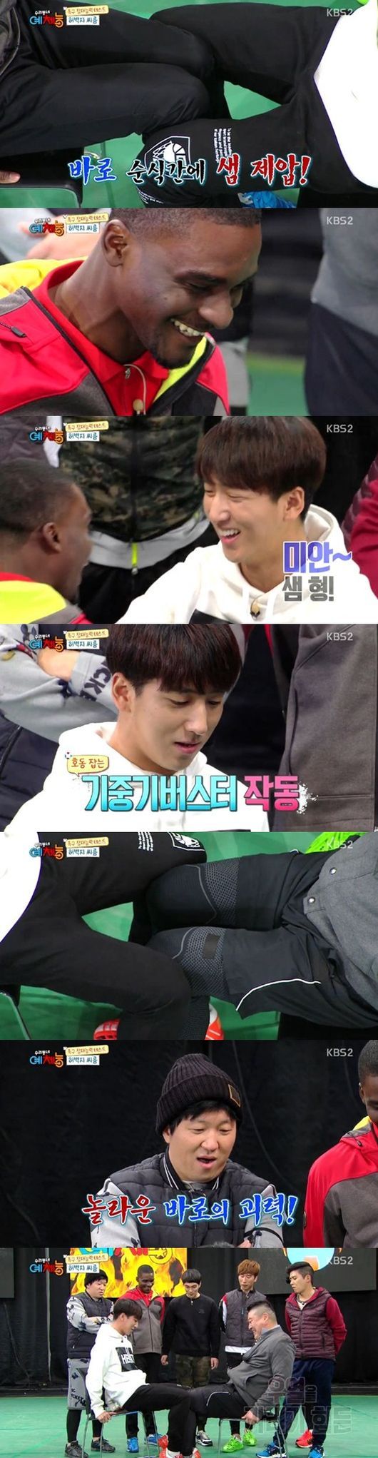 한편 이날 '예체능'에는 족구 편이 첫 방송 돼 강호동, 정형돈, 양상국, 안정환, 홍경민, 이규한, 샘 오취리, 바로가 출연했다.