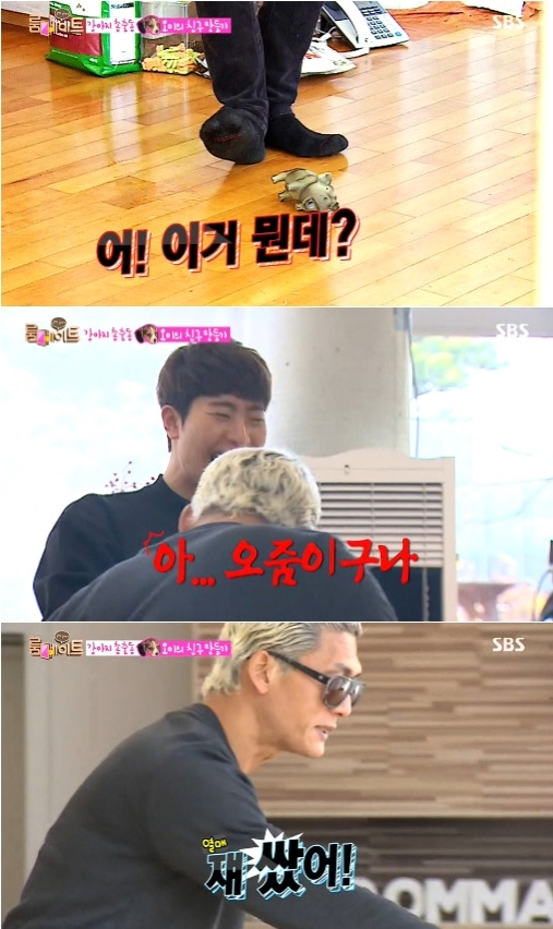 '룸메이트' 박준형이 애완견이 실례한 흔적을 밟았다.