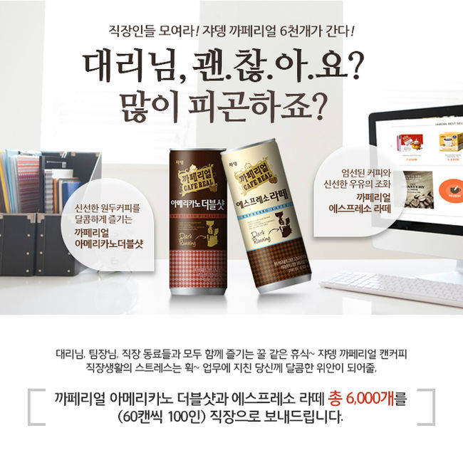 원두커피 전문기업 ㈜쟈뎅(대표 윤영노·윤상용)은 직접 로스팅한 원두커피 추출액을 넣은 까페리얼 캔커피 6000개를 증정하는 '직장인 응원 이벤트'를 오는 2월 6일까지 진행한다고 밝혔다.