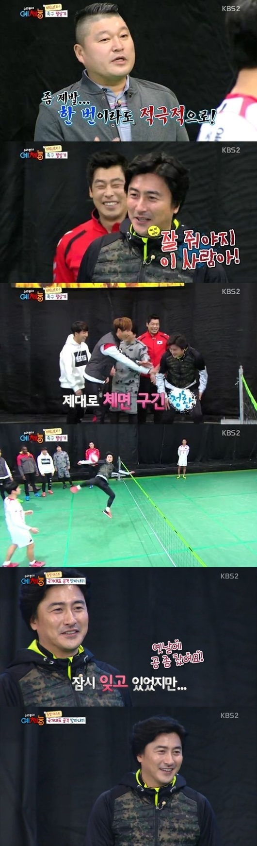 그의 활약은 예능감으로 끝나지 않았다. 족구 시간에는 축구 국가대표 출신답게 탁월한 볼 감각을 빛낸 것. 돌려차기 테스트에 임한 그는 공을 받는 족족 뻥뻥 차내며 축구 못지 않은 족구실력을 드러냈다. 자신의 실력에 열광하는 멤버들 앞에서는 뿌듯한 모습을 보이면서도 “예전에 공을 좀 찼다”고 말하는 모습이 웃음을 줬다.