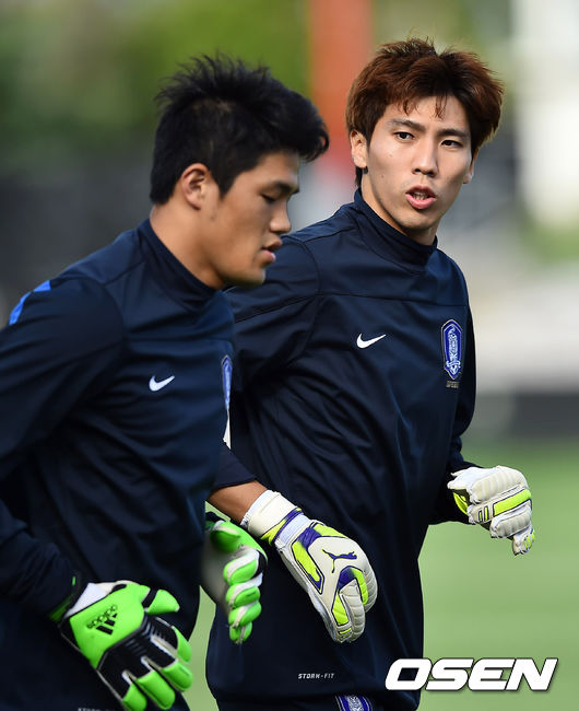 정성룔, 김진현이 러닝을 하며 몸을 풀고 있다.