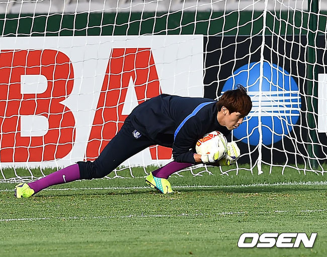 울리 슈틸리케 감독이 이끄는 한국 축구대표팀은 28일(이하 한국시간) 호주 시드니 코가라 오벌에서 재차 담금질을 이어갔다. 김진현이 수비 훈련을 하고 있다.