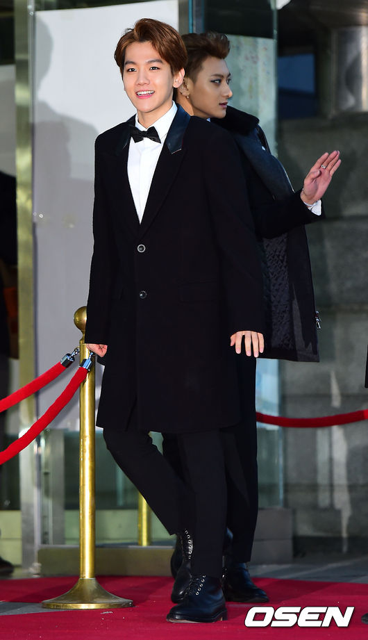 그룹 엑소 백현과 타오가 28일 오후 서울 올림픽 체조경기장에서 열린 '제4회 가온차트 K-POP 어워드' 레드카펫 행사에 참석하고 있다.