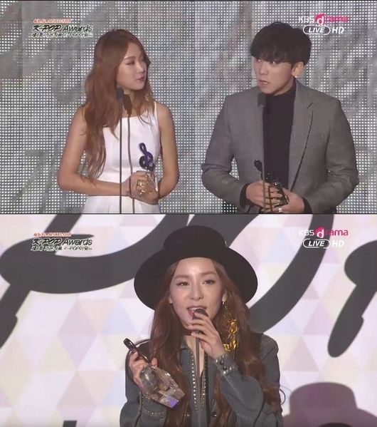 걸그룹 걸스데이와 소유X정기고, 2NE1이 '제4회 가온차트 K팝 어워드'에서 올해의 가수상을 받았다.