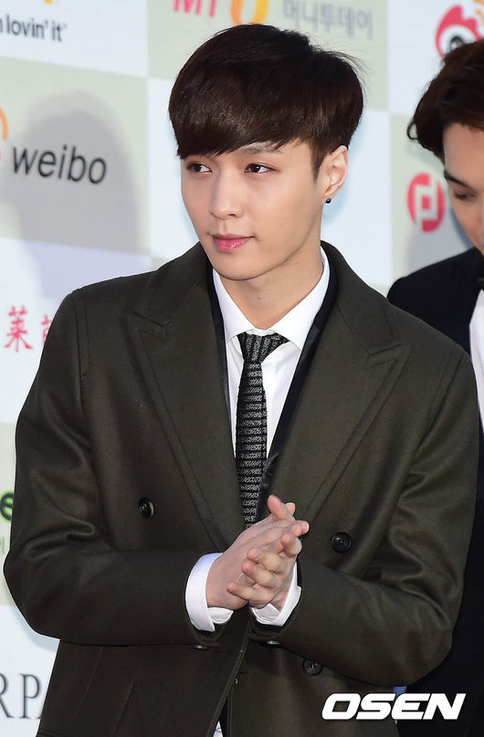 28일 오후 서울 올림픽 체조경기장에서 열린 '제4회 가온차트 K-POP 어워드' 레드카펫 행사에서 엑소 레이가 포토타임을 갖고 있다.