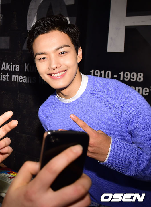28일 오후 서울 CGV 홍대에서 열린 영화 '내 심장을 쏴라' 일일스태프 행사에서 배우 여진구가 티켓 판매를 도우며 팬과 사진을 찍고 있다.