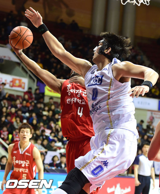 2쿼터, KCC 하승진이 KGC 윌리암스를 수비하고 있다.