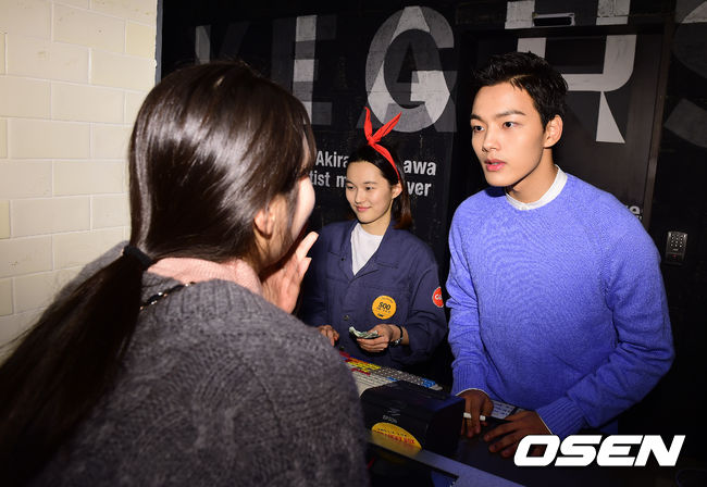 28일 오후 서울 CGV 홍대에서 열린 영화 '내 심장을 쏴라' 일일스태프 행사에서 배우 여진구가 티켓 판매를 돕고 있다.