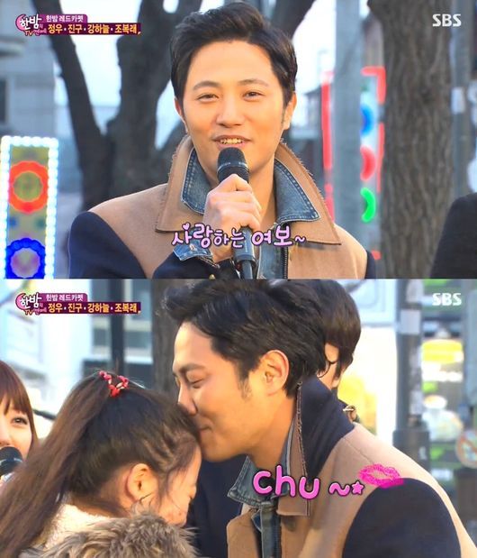 진구가 팬에게 이마 키스하며 아내에게 사과해 웃음을 자아냈다.
