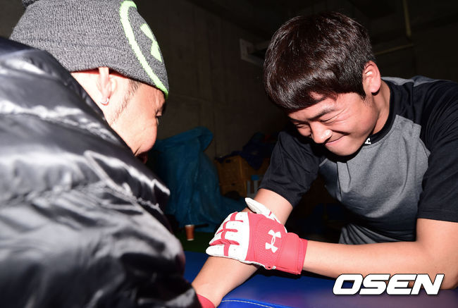 kt위즈 이성민이 근력 훈련을 하고 있다.