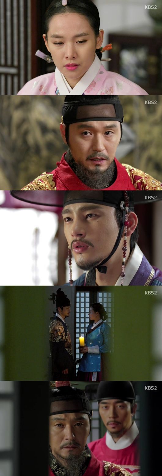 28일 오후 방송된 KBS 2TV 수목드라마 '왕의 얼굴'(극본 이향희 연출 윤성식) 20회에는 광해(서인국 분)와 김가희(조윤희 분)의 만남에 신경이 날카로워진 선조(이성재 분)의 모습이 전파를 탔다.
