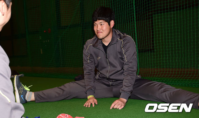 kt위즈 정대현이 스트레칭을 하고 있다.