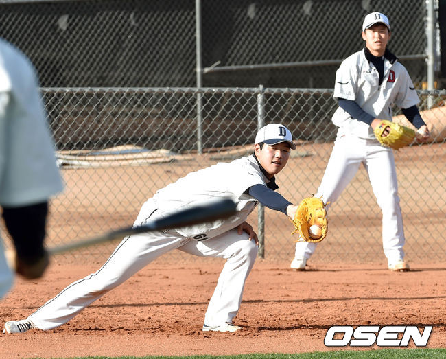 함덕주가 이상훈 코치가 쳐주는 펑고를 받고 있다./spjj@osen.co.kr