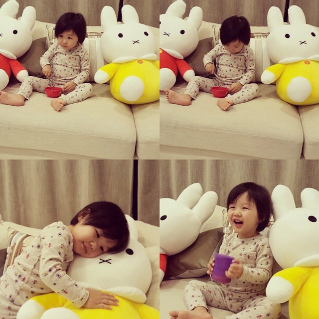 이를 접한 네티즌은 "귀여운 지온이", "우쭈주", "미소가 너무 예쁘네", "크면 정말 예쁠 것 같다", "엄마 판박이네" 등의 반응을 보였다.