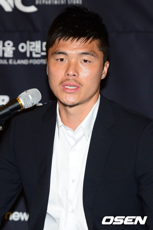 29일 오후 서울 여의도 렉싱턴 호텔에서 열린 서울 이랜드 FC 공식기자회견에서 김영광이 질의응답 시간을 갖고 있다.