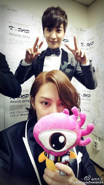공개된 사진에서 김희철은 이특과 함께 '가온차트 어워드' 현장에서 세련된 슈트를 입고 귀여운 표정을 짓고 있다. 또한, 김희철이 중국 웨이보를 대표하는 인형을 들고 사진을 찍어 눈길을 끈다.