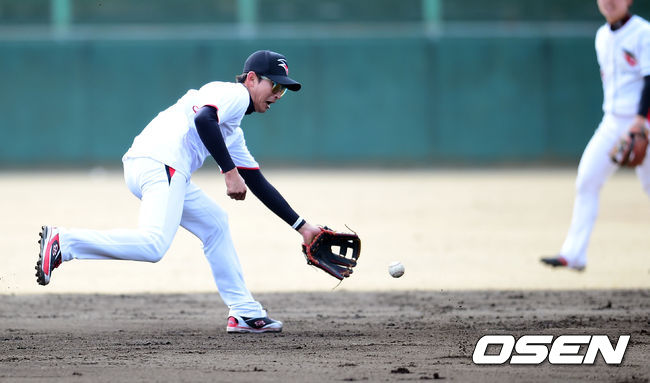 29일 오후 kt위즈의 스프링 캠프가 차려진 일본 미야자키(宮崎)현 휴가(日向)시의 다이오타니 야구장에서 kt위즈 박기혁이 펑고훈련을 하고 있다.