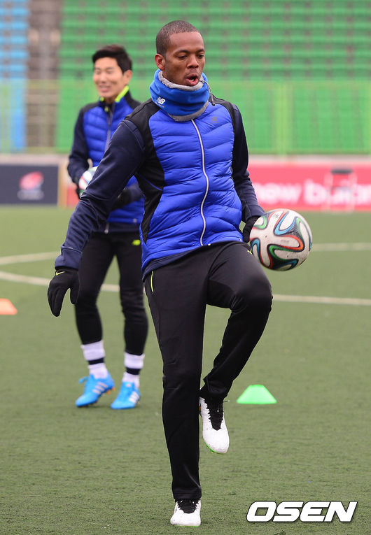 29일 오후 서울 효창운동장에서 열린 서울 이랜드 FC 공개훈련 행사에서 미첼이 훈련을 하고 있다.