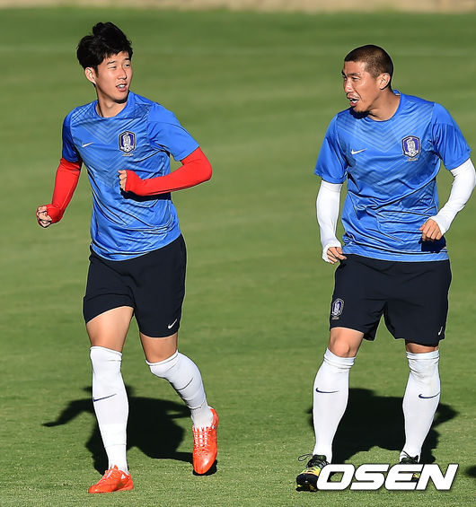 차두리와 손흥민이 런닝을 하며 얘기를 나누고 있다.