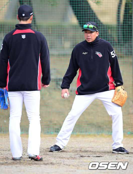 29일 오전 kt위즈의 스프링 캠프가 차려진 일본 미야자키(宮崎)현 휴가(日向)시의 다이오타니 야구장에서 kt위즈 김사율이 후배들에게 조언을 하고 있다.
