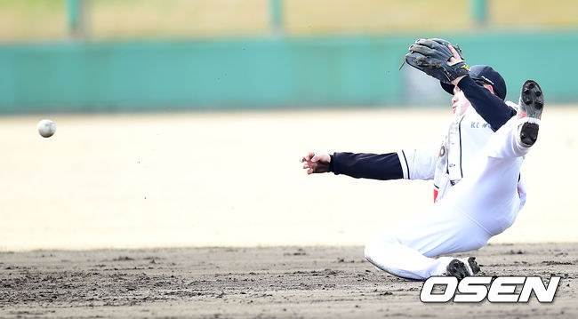 29일 오전 kt위즈의 스프링 캠프가 차려진 일본 미야자키(宮崎)현 휴가(日向)시의 다이오타니 야구장에서 kt위즈 김선민이 수비 훈려을 하고 있다