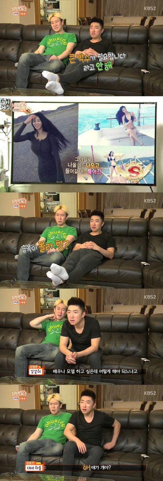 장동민은 그저 “어? 걔가 얘야?”라고 갸우뚱하며 방송을 지켜봤지만, 김영준은 “잘 될 줄 알았어. 몸매가 좋았어. 그때도”라고 설명했다. 이에 장동민은 “그래 그때도 통닭을 들입다 먹더라”면서 유승옥의 운동법은 억지라고 말했다.
