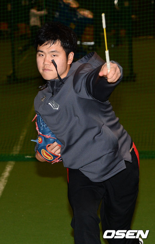 29일 오전 kt위즈의 스프링 캠프가 차려진 일본 미야자키(宮崎)현 휴가(日向)시의 다이오타니 야구장에서 kt위즈 심재민이 섀도 피칭을 하고 있다.