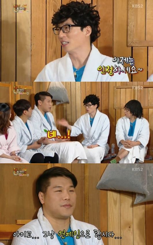 박명수는 “TV를 틀면 나온다. 수도꼭지다”라고 말한 것. 이에 서장훈은 당황했지만 유재석과 박명수의 몰아치는 말에 어쩔 수 없이 “네”라고 답했다. 박명수는 “연예인 노조에 가입해야 한다”고 말했다.