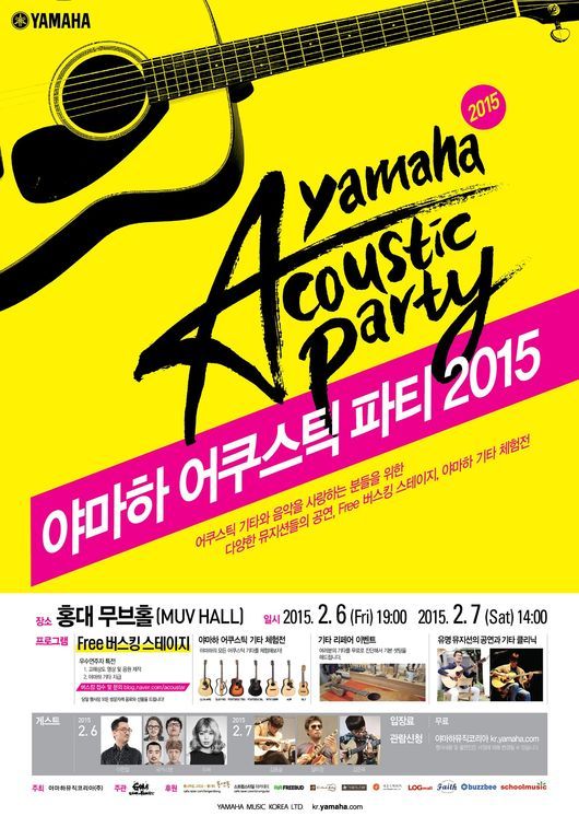 이번 행사는 서울 홍익대학교 근처 '예스24 무브홀'에서 2월 6일과 7일 양일간 진행되며, 야마하는 방문객들을 대상으로 다양한 이벤트를 진행한다. 6일에는 가수 이한철과 하현우(국카스텐), 여성 싱어송라이터 '리싸'의 무대가 펼쳐지고, 7일에는 국내 최정상의 기타리스트 '찰리정'과 핑거스타일 기타리스트 '김종걸'이 기타 연주에 관한 노하우를 공개할 예정이다. 작년 11월 일본에서 개최된 '아시안비트 어쿠스틱 그랜드파이널'에서 최우수연주자상을 수상한 14세의 천재 기타리스트 김준욱 군의 특별 공연도 준비되어있다.
