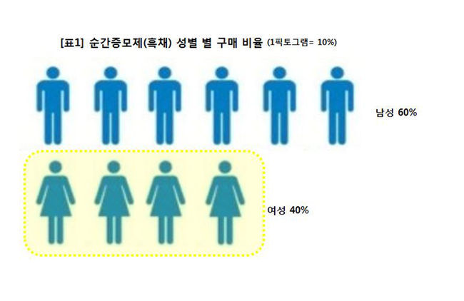 ▲ 흑채 구매하는 3040, 전체 구매의 65%차지
