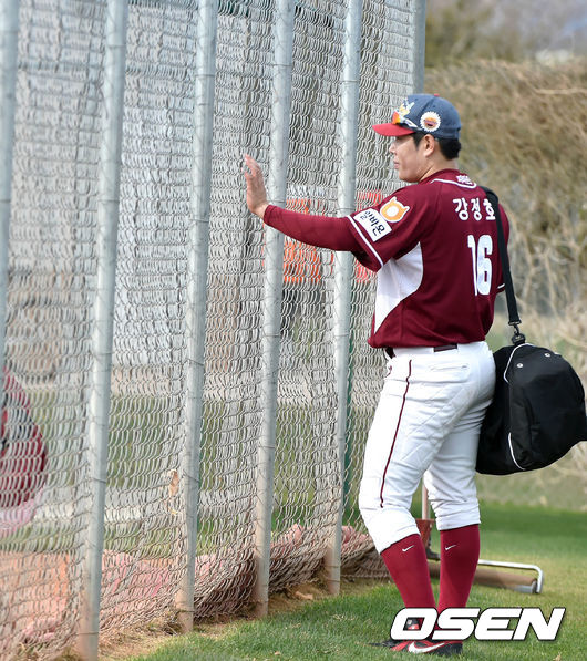 강정호가 얼마 남지 않은 넥센 캠프와 이별이 아쉬운지 선수들의 훈련을 지켜보고 있다./spjj@osen.co.kr