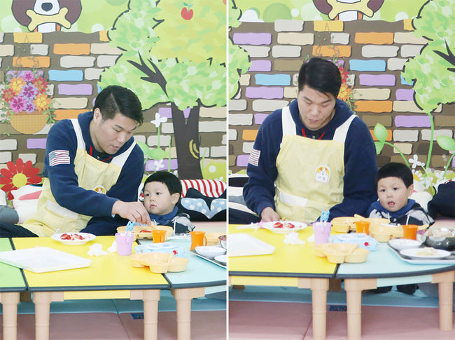 공개된 사진에서는 유치원 선생님으로 변신한 서장훈이 윤석이와 다정한 식사 시간을 가지는 모습이 담겨있다. 서장훈은 스스로 밥 먹기 힘든 윤석이의 식사를 도와주고 있어 눈길을 끈다.