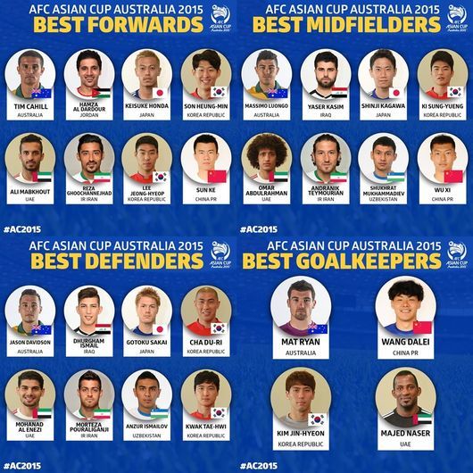 아시아축구연맹(AFC)이 아시안컵 공식 페이스북을 통해 이번 대회에서 최고의 활약을 보여준 포지션별 선수들의 명단을 공개했다.