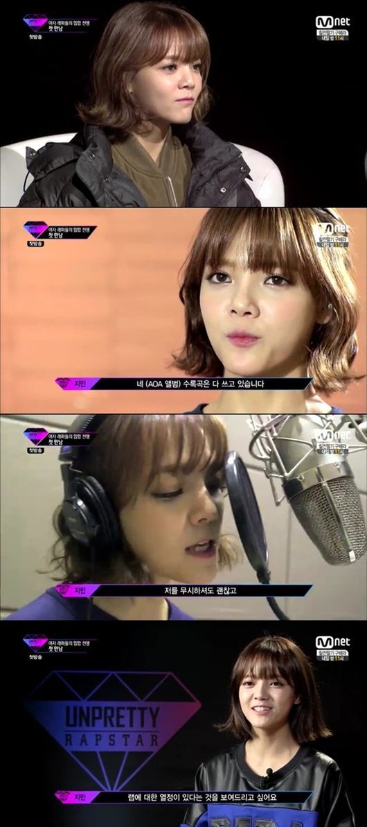 지난 29일 첫 방송된 케이블채널 엠넷 '언프리티 랩스타'에서는 지민이 아이돌 출신으로 유일하게 참가해 발군의 실력을 발휘했다. 아이돌이라는 편견에 눈물을 보이거나 "많이 배우기 위해서 왔다"는 겸손한 태도는 100초 싸이퍼 미션이 시작되자마자 바뀌었다. 원 테이크 뮤직비디오 촬영이 시작되자마자 프로페셔널한 모습으로 돌변한 것.