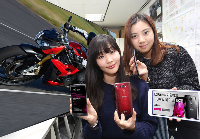 LG유플러스는 3밴드 LTE-A 전용 스마트폰 LG G플렉스2의 곡선 디자인과 플라멩코 레드((Flamenco Red)색상에 착안해 속도, 디자인, 색상이 가장 유사한 이미지를 가지고 있는 BMW 모터싸이클을 1명에게 추첨을 통해 제공한다.