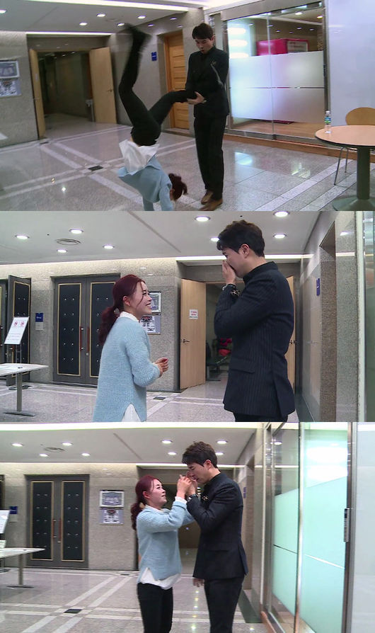 전혀 예상치 못했던 일이 순식간에 벌어져 박수홍, 박수애 커플 모두 당황한 모습을 감추지 못했다. 뜻하지 않게 남편의 얼굴을 차버린 아내 박수애는 민망함에 고개를 들지 못했고, 갑작스럽게 얼굴을 맞은 남편 박수홍도 어리둥절한 표정을 지었다.