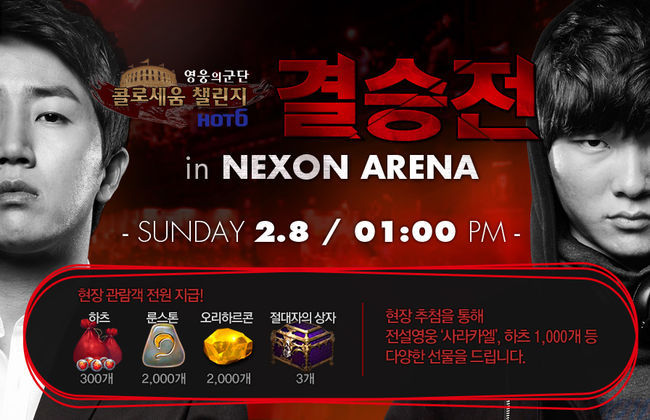 넥슨은 총 상금 1000만 원 규모의 ‘핫식스 영웅의 군단 콜로세움 챌린지’ 결승전이 2월 8일 오후 1시 서울 서초구 넥슨 아레나에서 개최한다고 30일 밝혔다.