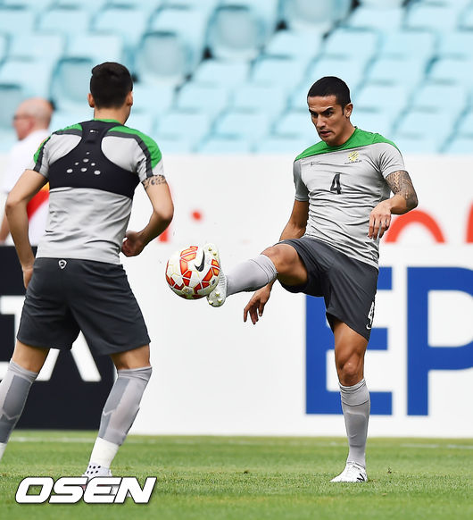울리 슈틸리케 감독이 이끄는 한국 축구대표팀과 호주대표팀이 30일(이하 한국시간) 호주 시드니에 위치한 스타디움 오스트레일리아서 2015 AFC 아시안컵 결승전 기자회견 및 훈련을 가졌다. 호주 대표팀의 팀 케이힐이 훈련을 하고 있다.
